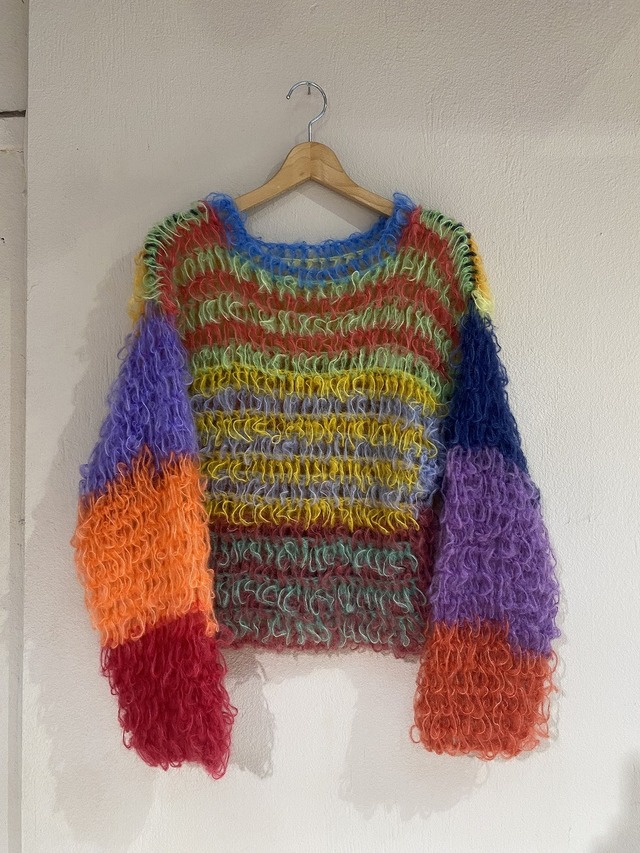 EDNA SS26 【WIDE ARM SWEATER ③】FOR WOMEN ●素材:モヘア100% ●サイズ:ワンサイズ ※サイズ詳細 身幅(ぐるり):約76cm 裄丈:約76cm 着丈(ネックポイントから):約53cm ●デザイン上、前後どちらでも着用可能 ●編みにゆとりがあるデザインなので若干の伸縮性があります ●全て手編みのためサイズスペックはアイテムによって個体差がございます ●計測は参考数値となるので若干の誤差が生じることがございます 予めご了承の上ご購入をお願い致します ●スタッフ:レディース166cm / メンズ175cm